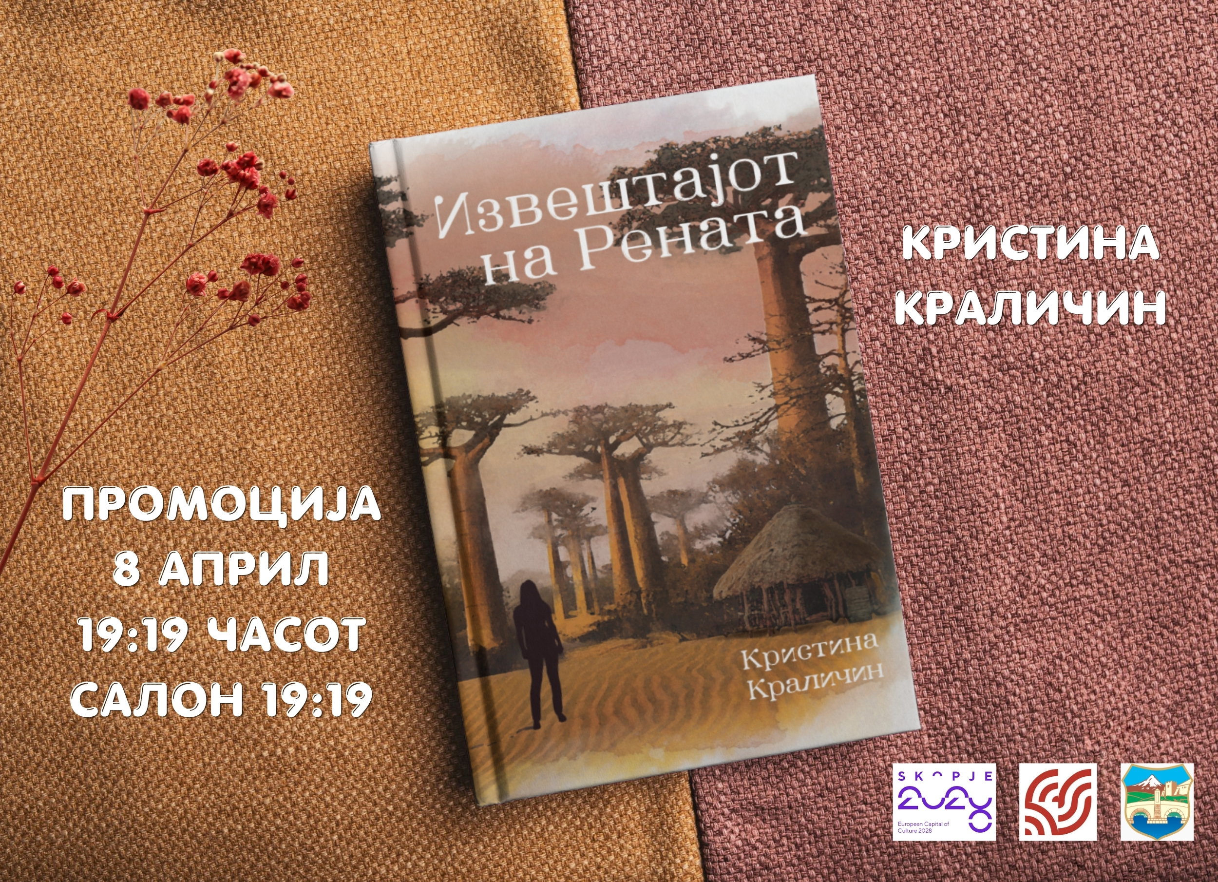 Романот „Извештајот на Рената“ од Кристина Краличин, во издание на издавачката куќа „Чудна шума“, ќе го промовираат Билјана Црвенковска и авторката во 19 часот во Салон 19:19, Културно-информативен центар во Скопје на 8 април.